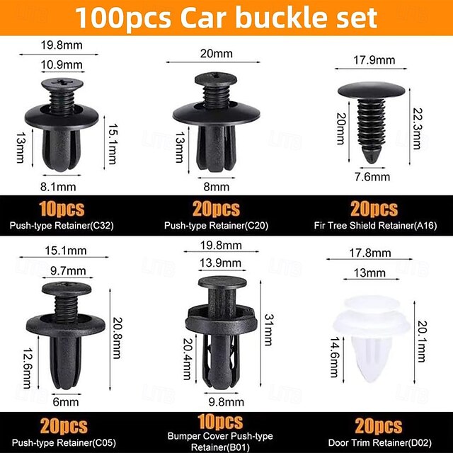 HE26 100PCS Universal Expansion Screw Clips Set with 5PCS Fastener ...
