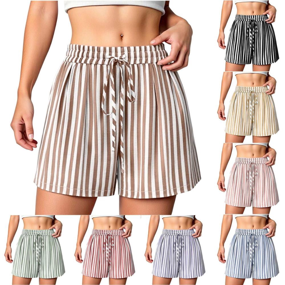 Bxsruta Women Striped Drawstring Shorts Casual High Waist Wide Leg with ...