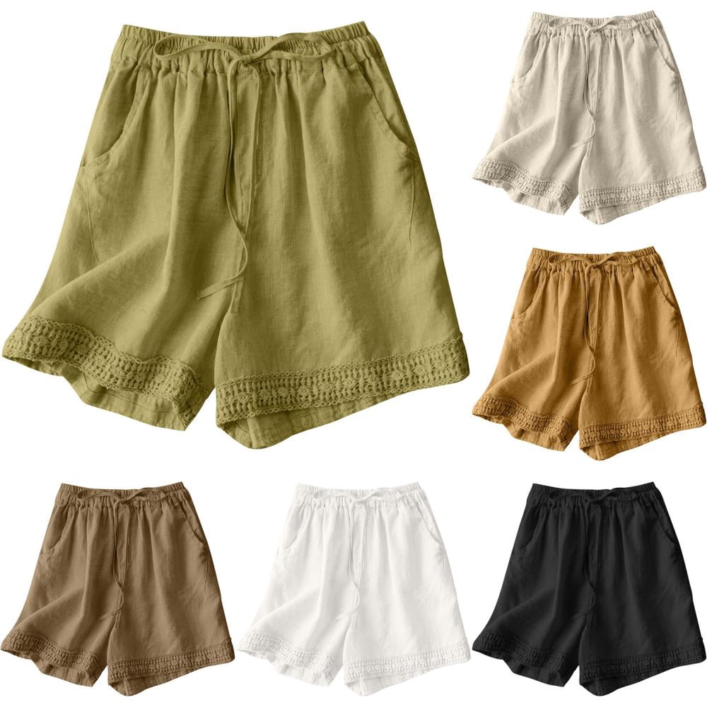 Cotton Linen Shorts for Women Plus Size Elastic Waist Drawstring Summer ...
