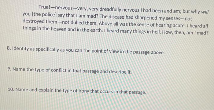 True!-nervous-very, very dreadfully nervous I had | Chegg.com
