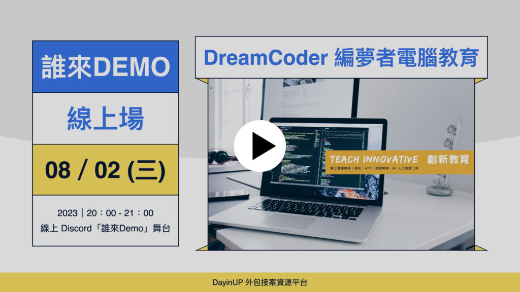 【誰來Demo】08/02 (三) |線上|DreamCoder 編夢者電腦教育 - DayinUP