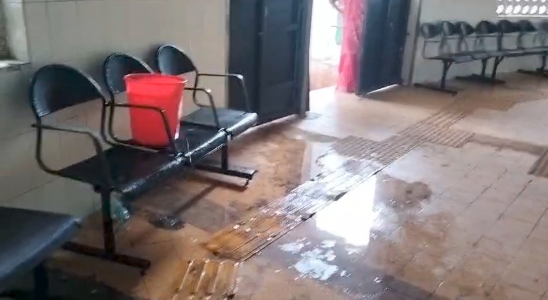 Water dripped from the ceiling in the OPD area of Lady Hospital