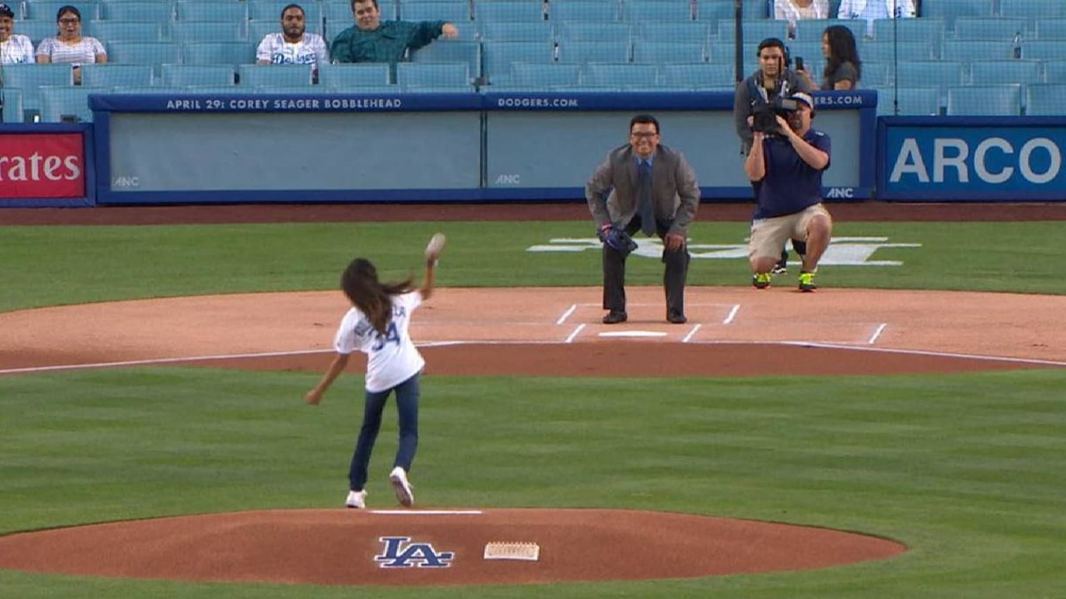 SD@LAD: Valenzuela's granddaughter tosses first pitch | 04/05/2017 ...