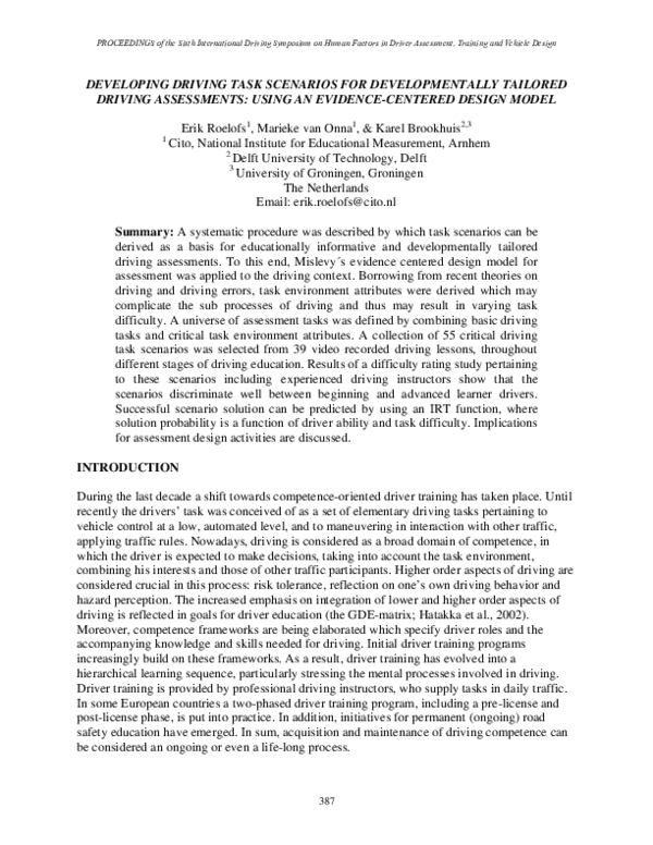 (PDF) Developing Driving Task Scenarios for Developmentally Tailored ...