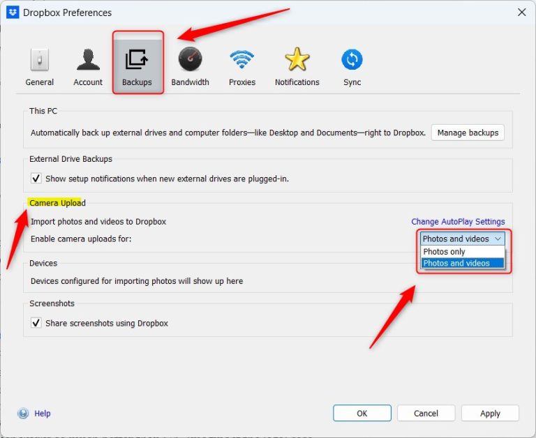 Enable Camera Upload in Dropbox on Windows 11 - Geek Rewind