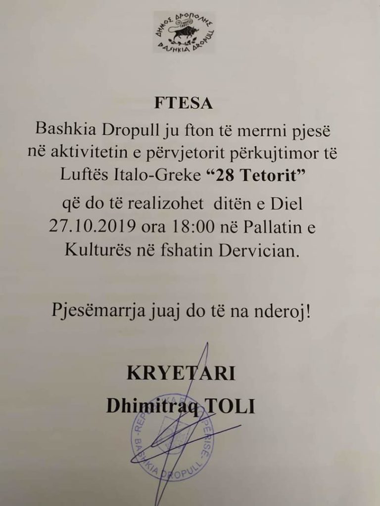 Bashkia Dropull, vet Kryetari i saj, z. Dhimitraq Toli, kontribuan ne ...
