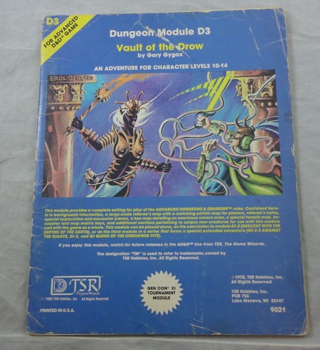 AD&D • Dungeon Module D3 • Vault of the Drow • TSR 9021 • Gygax | eBay