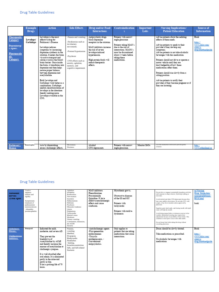Module 2 Drug Table - this is a great content to look at. Please review ...
