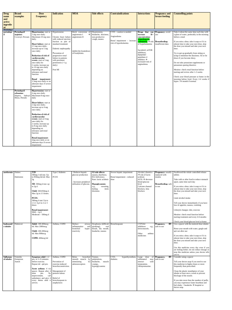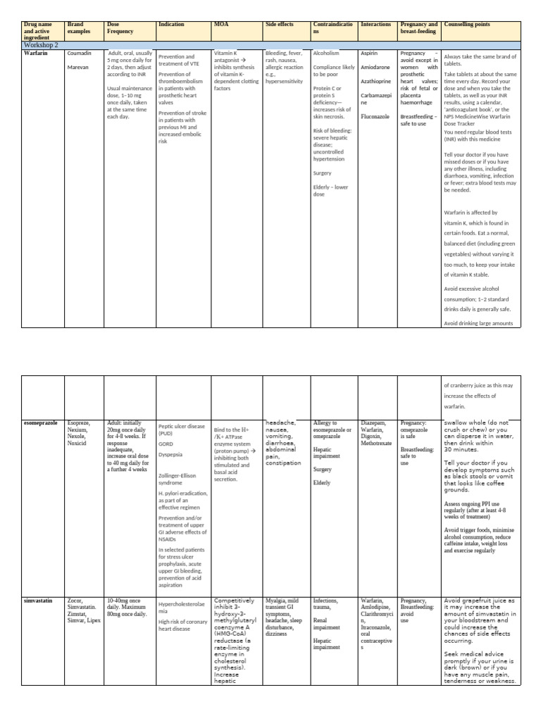 Drug Table Workshop 2 | PDF