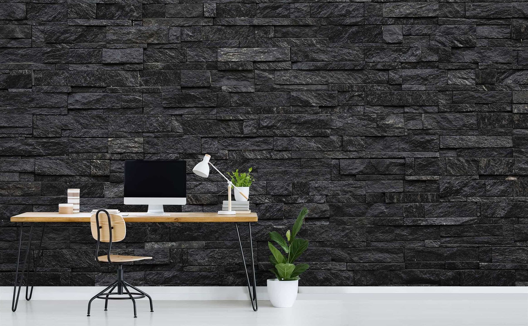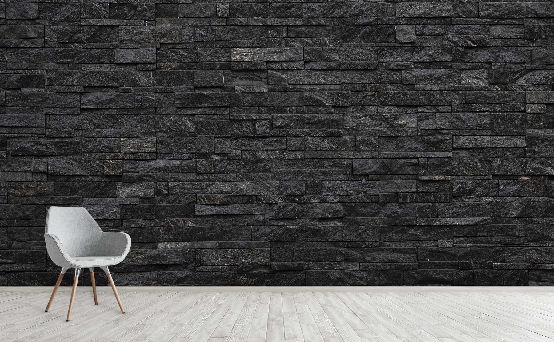 Natural black dry stacked slate brick Wall Mural | Llangollen ...