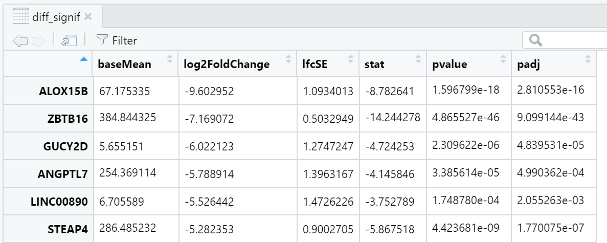 Differential gene expression analysis (DESeq2) shows significant gene ...