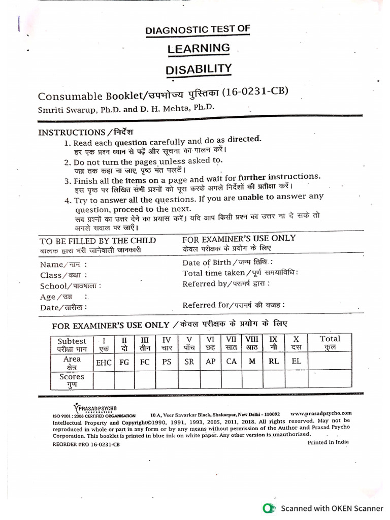 DTLD - Diagnostic Test of Learning Disabilities Manual Overview - Studocu