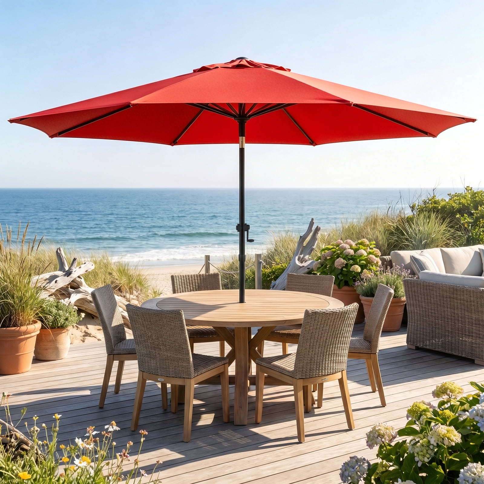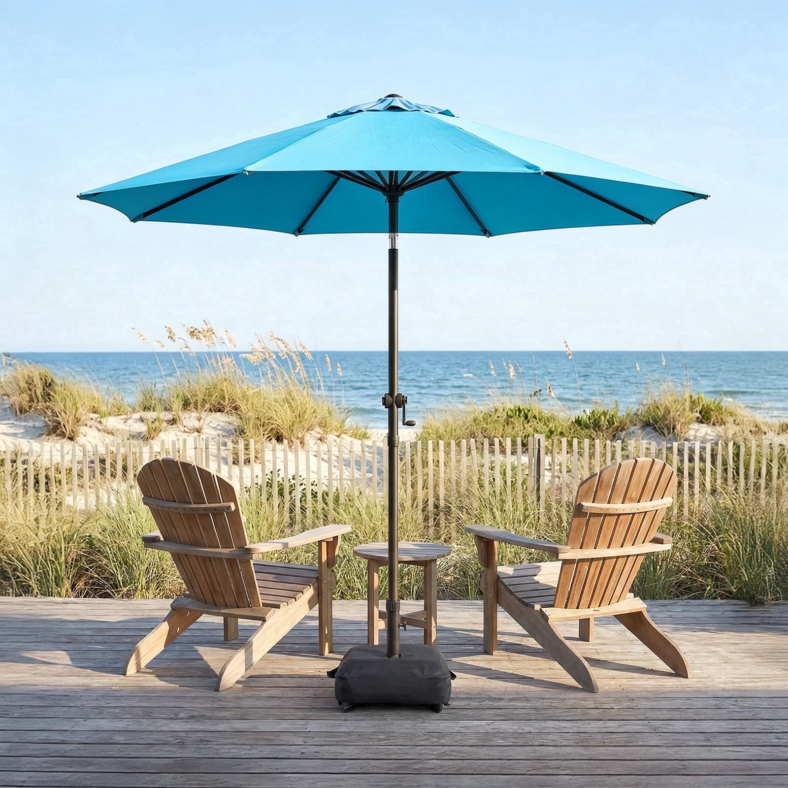 9FT Patio Umbrella with Included Base, 8 Heavy-Duty Ribs, Weather ...
