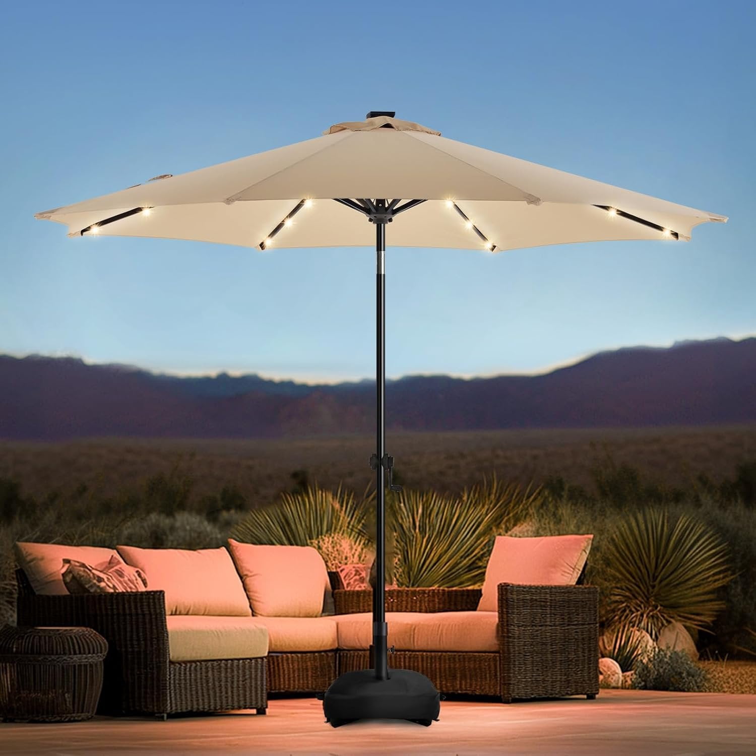 9FT Solar Led Patio Umbrella with Base Included, 32 LED Lights, 8 ...