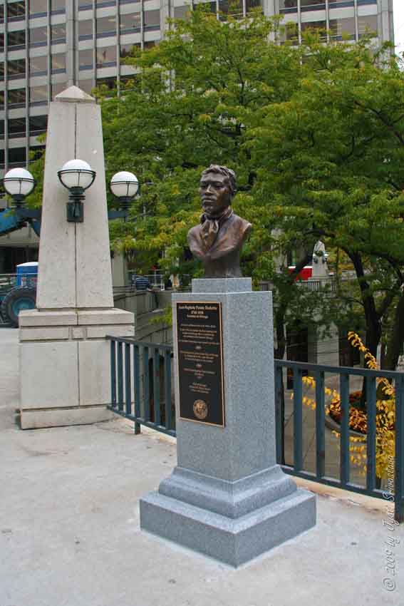Monument to the founder of Chicago, Jean-Baptiste Pointe DuSable on the ...