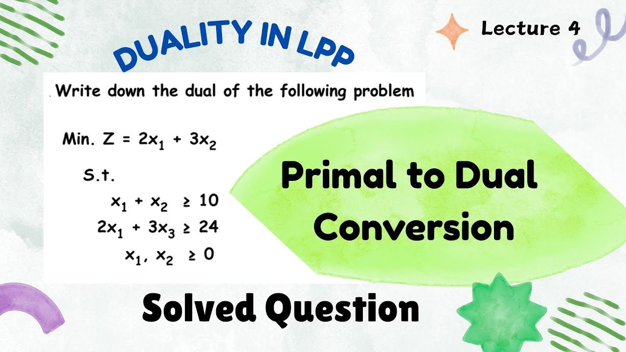 Primal to Dual conversion | Duality in LPP | linear programming problem ...