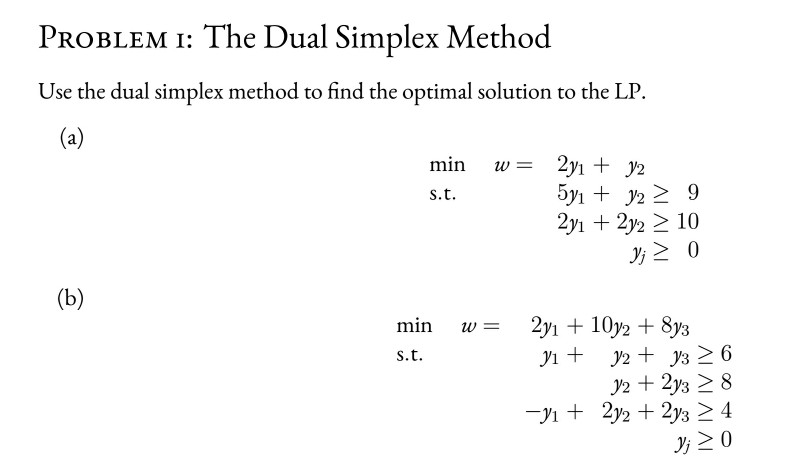 Solved PROBLEM I: The Dual Simplex Method Use the dual | Chegg.com