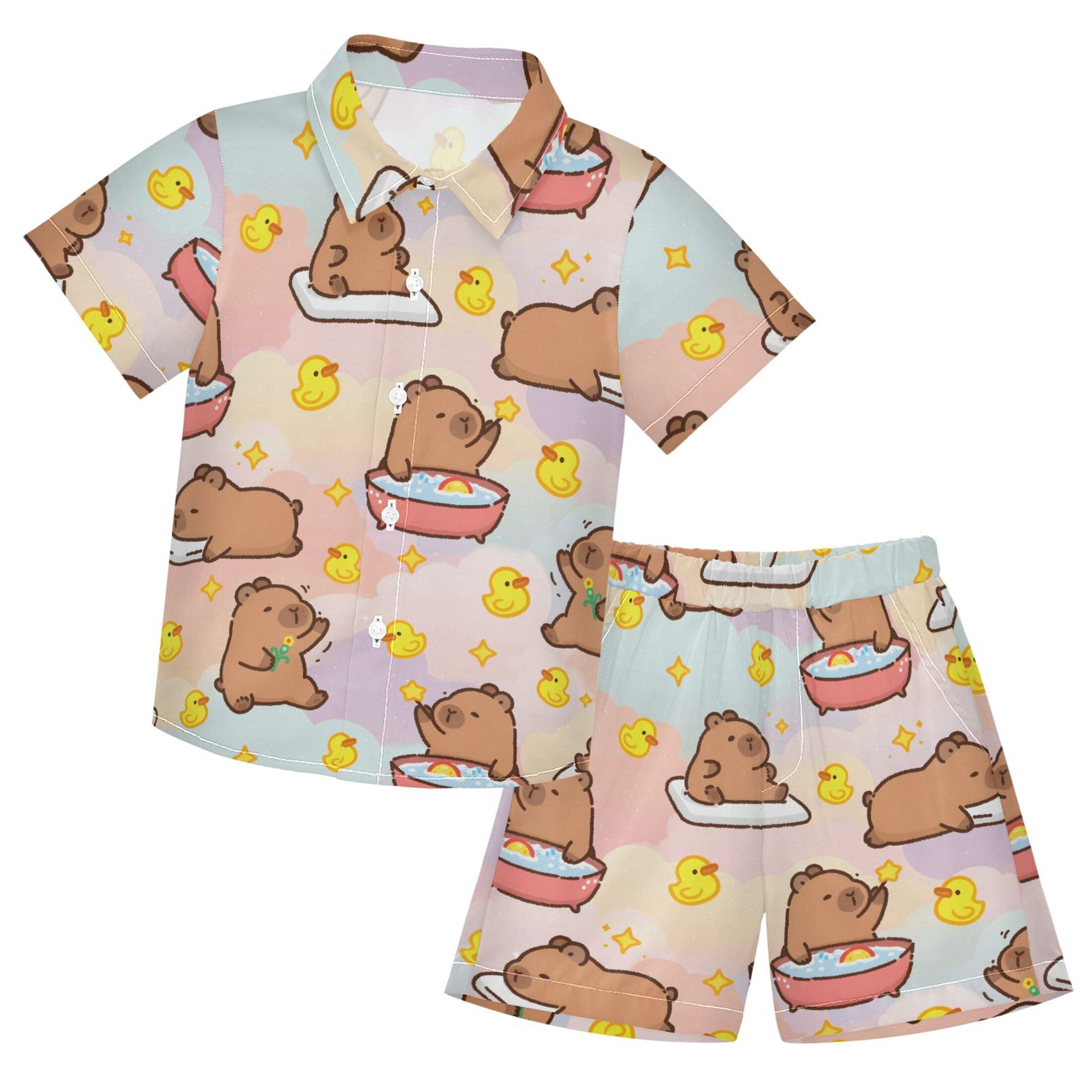 Capybara Duck Pattern Boys' Hawaiian Shorts Sets Button Down Shirts 3T ...