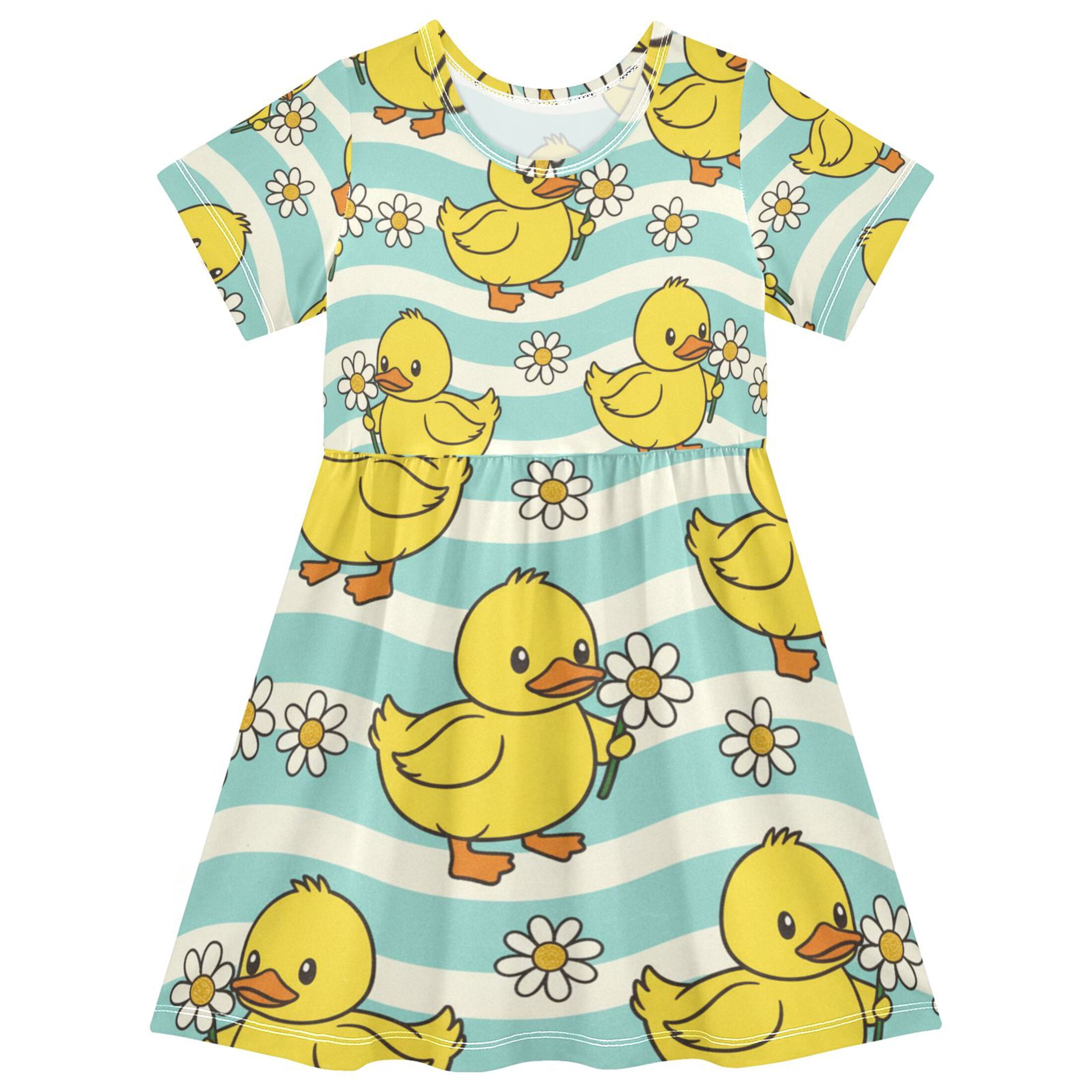 BZSMCE Short Sleeve Dress A-line Silhouette Little Yellow Duck Pink Bow ...