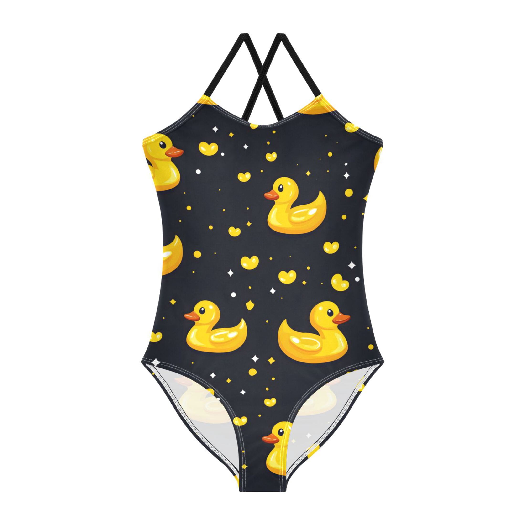 Duck Heart Pattern Girls' One-Piece Swimwear 3T-10T Soft Stretchy for ...