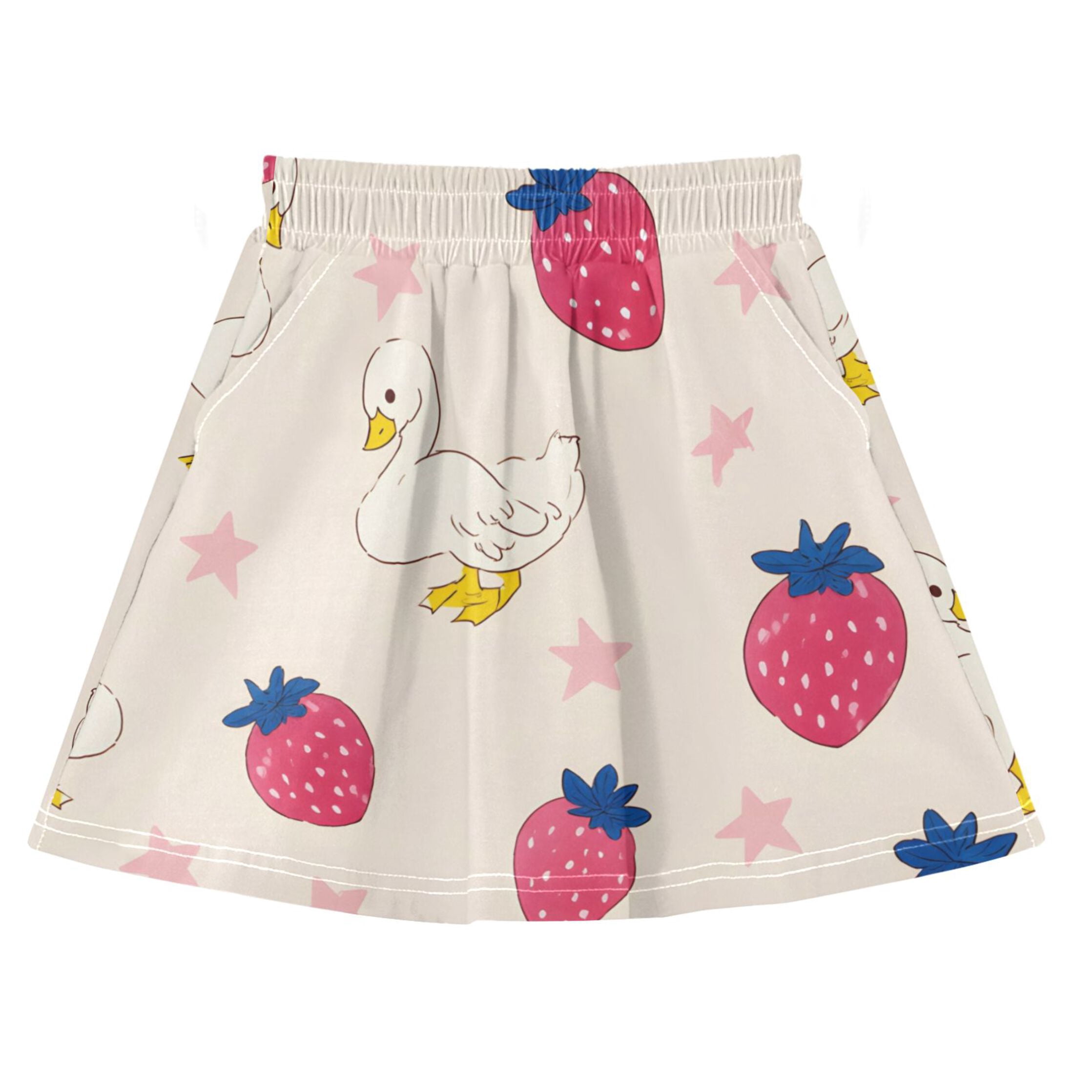 Duck and Strawberry Pattern Cotton Skirt Built-in Liner Elastic A-Line ...