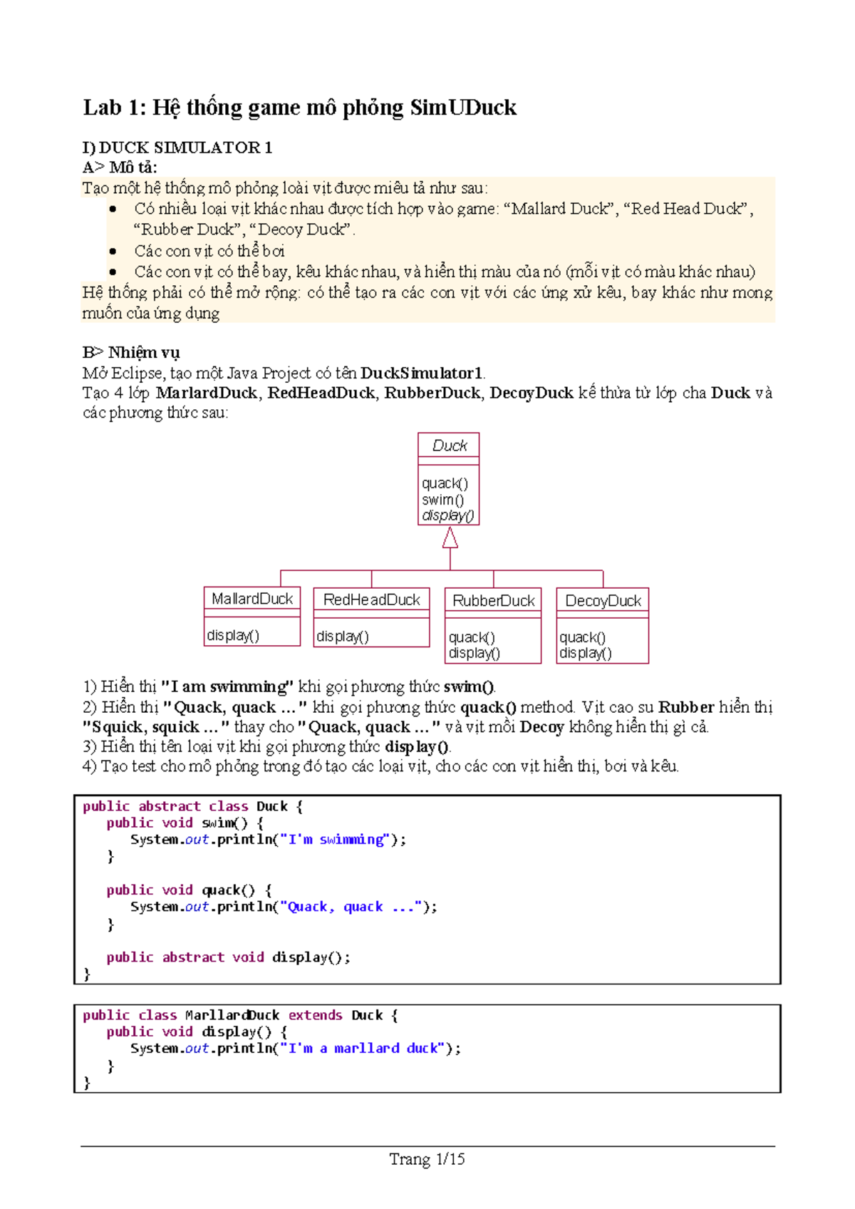 Lab 3: Hệ thống game mô phỏng Duck Simulator với Strategy Pattern - Studocu