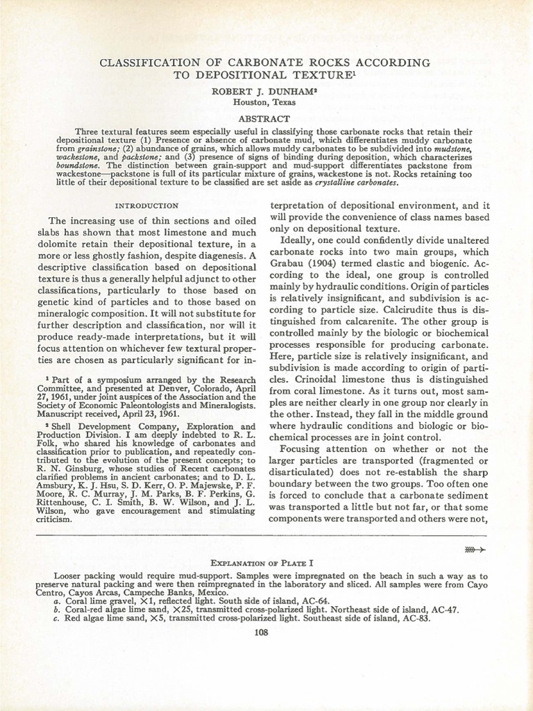 Dunham 1962 AAPG Classification of Carbonate Rocks | PDF | Limestone ...
