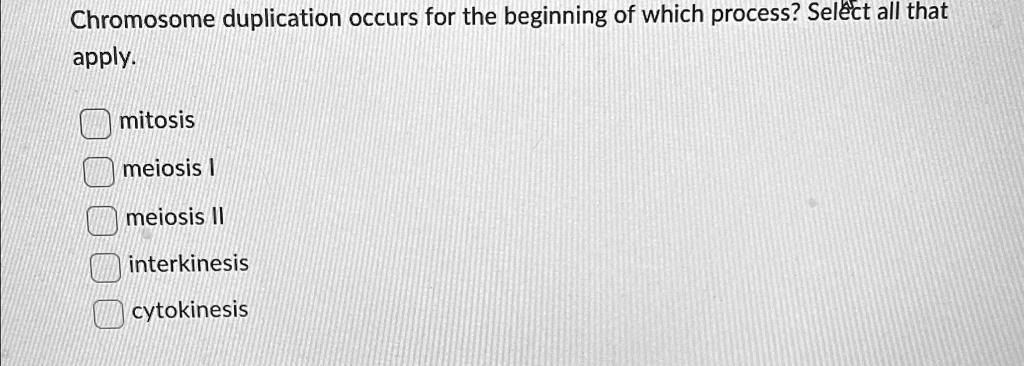 Chromosome duplication occurs for the beginning of which process ...