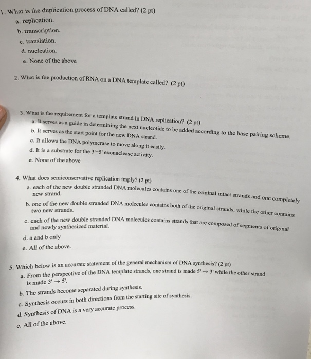 Solved 1. What is the duplication process of DNA called? (2 | Chegg.com
