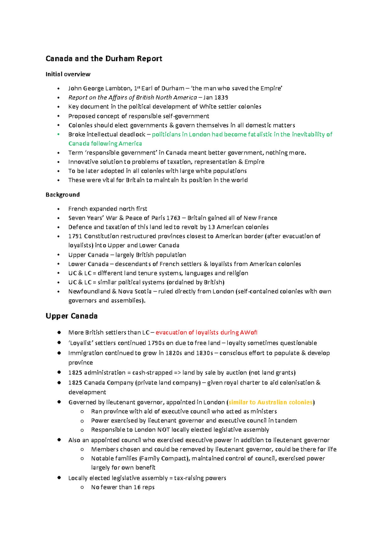 Canada and the Durham Report: Key Insights and Historical Context - Studocu