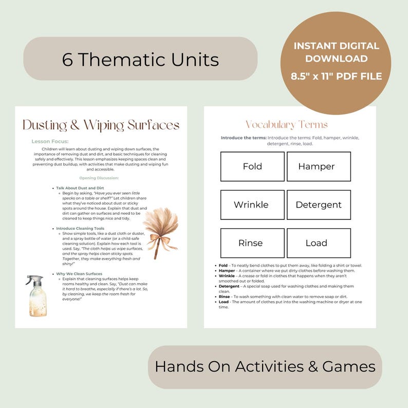 Home Skills Unit: Cleaning & Organizing Lesson Plans (ages 4-7 ...