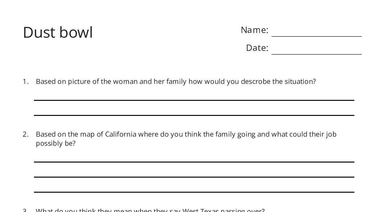 Dust bowl - My Worksheet Maker: Create Your Own Worksheets