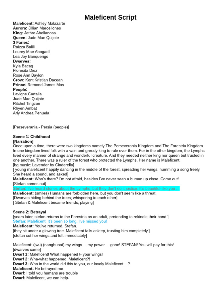 Maleficent Script 060435 | PDF | Dwarf (Dungeons & Dragons)
