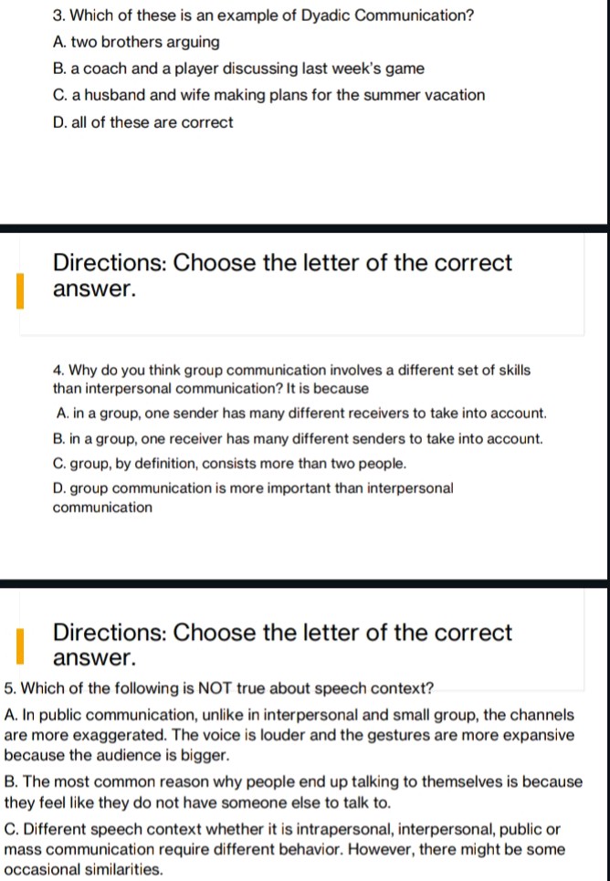 Solved: Which of these is an example of Dyadic Communication? A. two ...