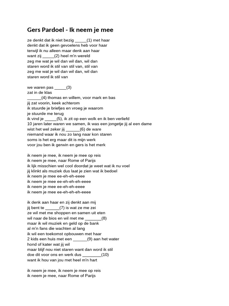 Gers Pardoel - Ik Neem Je Mee - Gatentekst | PDF