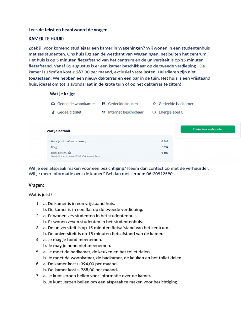 Tekst h7 - Kamer Te Huur | PDF