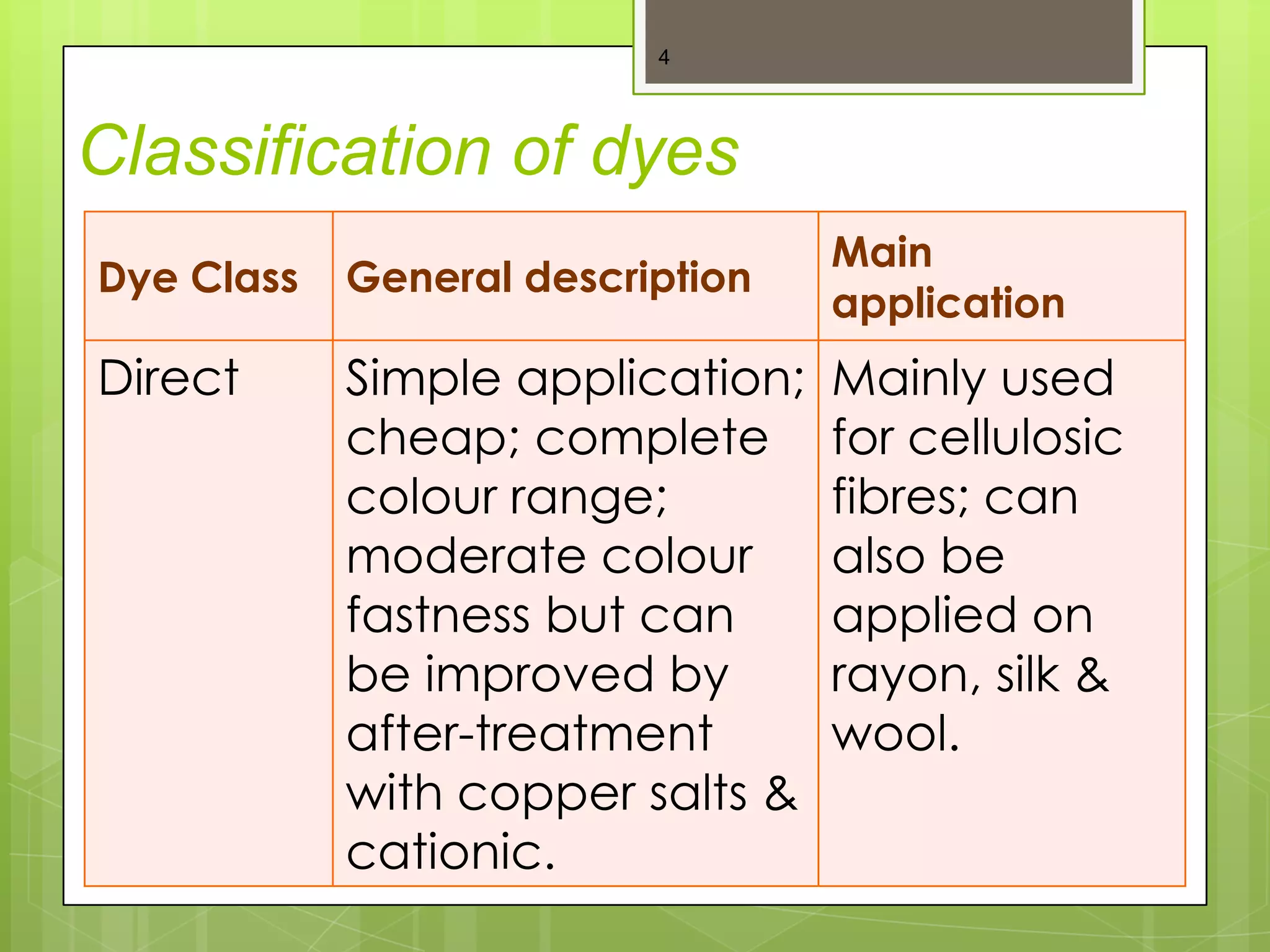 Dyes Classification, Characteristics & Commercial Names - Textile Learner