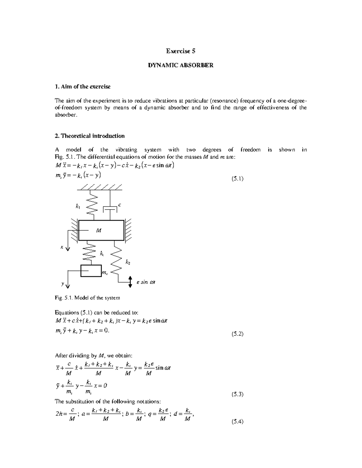 Exercise 5 - Dynamic absorber - Exercise 5 ####### DYNAMIC ABSORBER 1 ...