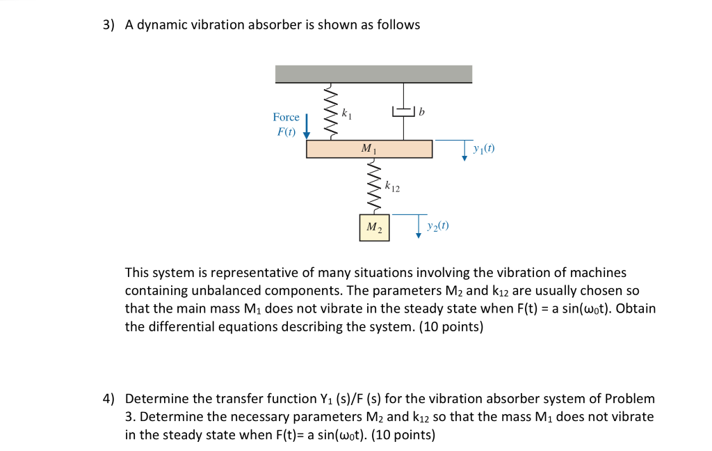 Solved 3) A dynamic vibration absorber is shown as follows | Chegg.com