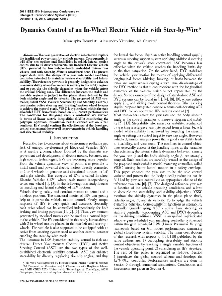 Dynamics Control of An In-Wheel Electric Vehicle With Steer-by-Wire ...