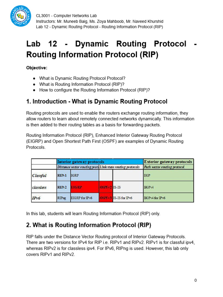 Lab 12 - Dynamic Protocol - Routing Information Protocol (RIP) | PDF ...