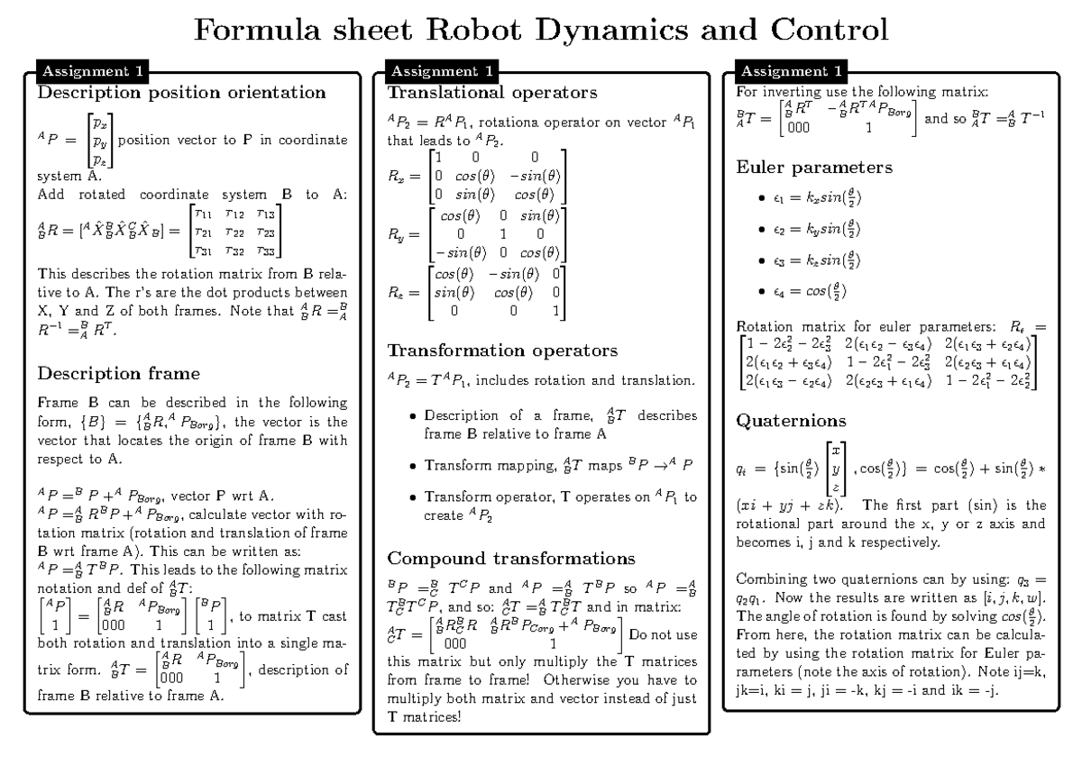 Robot Dynamics and Control - Formula sheet Robot Dynamics and Control ...
