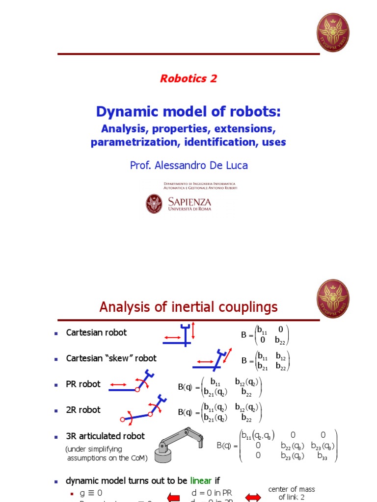 Dynamic Model of Robots:: Robotics 2 | PDF | Electric Motor | Kinematics