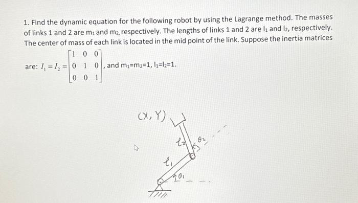 Solved 1. Find the dynamic equation for the following robot | Chegg.com