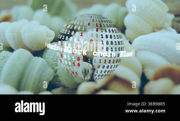 Data updating rotating 3D globe in clear orb running tickers morphing ...