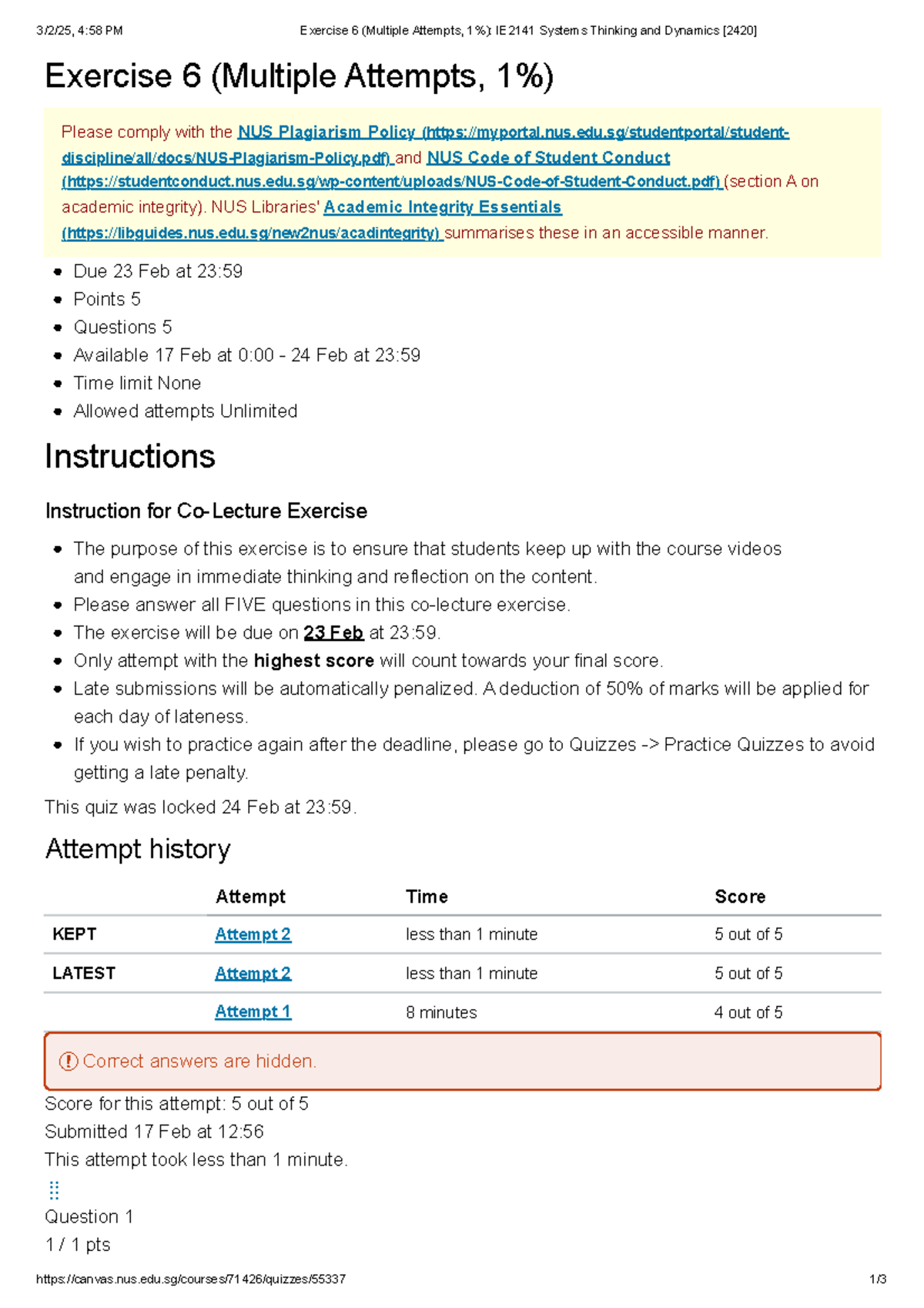 Exercise 6 (Multiple Attempts) - IE2141 Systems Thinking & Dynamics ...