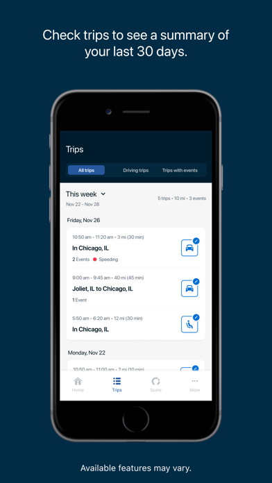DriveScore mobile app for tracking driving behavior, showcasing its ...
