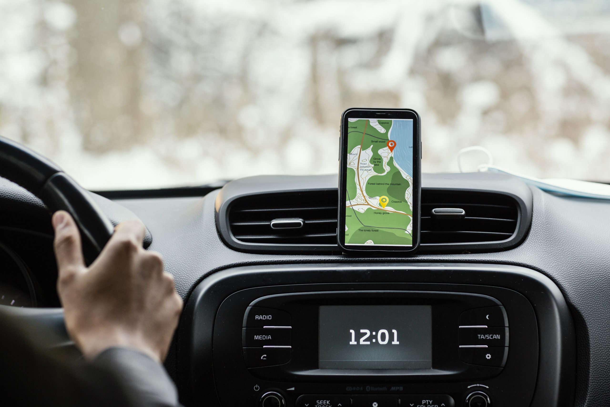 Premium Photo | Driver Navigating with Smartphone on Dashboard during ...