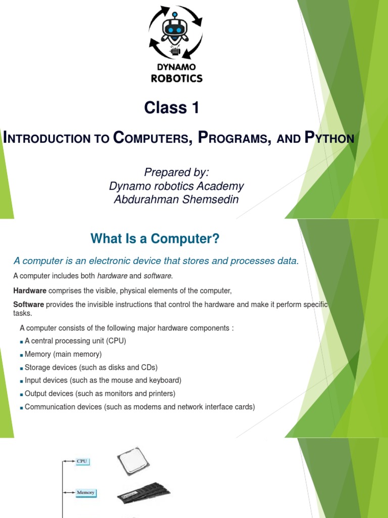 Class 1: Prepared By: Dynamo Robotics Academy Abdurahman Shemsedin ...