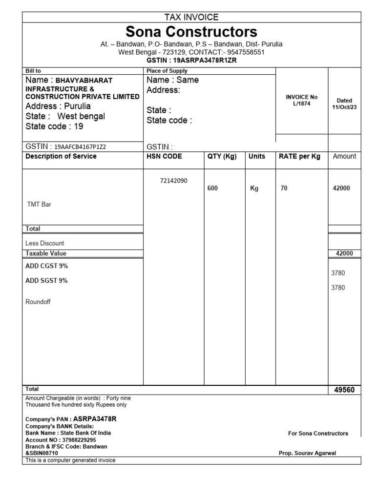 Analysis of a Tax Invoice for Wire Industries in West Bengal Detailing ...